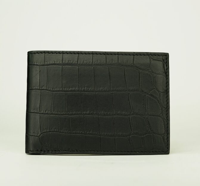 For those who appreciate classic luxury, this black crocodile leather billfold wallet is built to last. Featuring a streamlined design with ample storage, it’s the perfect blend of practicality and timeless elegance.
