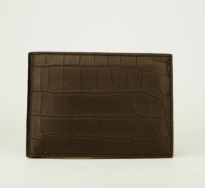 A wallet that speaks to effortless style. The deep Nicotine shade highlights the natural texture of Nile crocodile leather, making this billfold a bold yet sophisticated everyday carry.